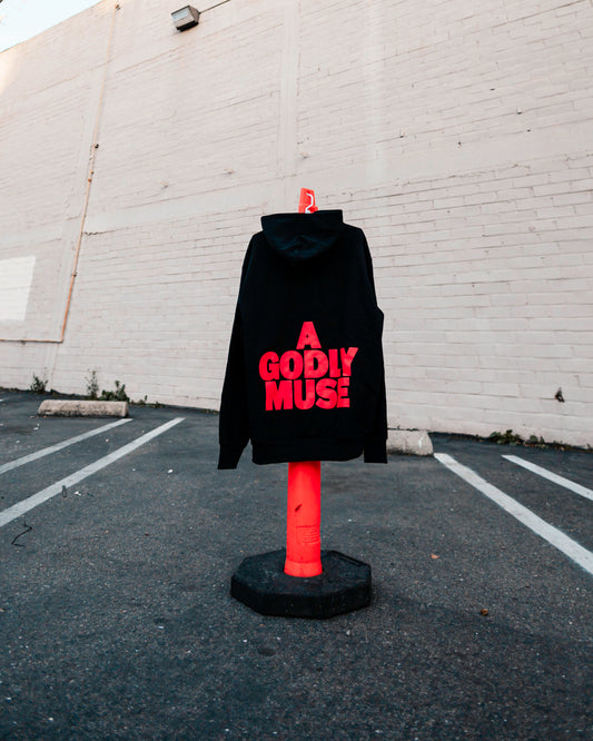 ‘A Godly Muse’ Hoodie ~ Black/Red